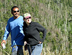It was a hot day and everyone was in shorts and shortsleeves. The first river crossing was without a bridge which was washed away last year and the water level was pretty high. When I arrived I observed people on the other side putting their boots back on so I got ready to take mine off. Just then UFC arrived and just ran across the rocks and managed to stay try, so I followed in his wet footprints and saved 15 minutes or so. On the other side I hooked up with JohnS, Meri, and Nancy, my compatriots from gourmet weekends past. At the second crossing (which was less favorable to those of us with short legs) we all elected to go across in sandles. The cold water felt pretty good, actually. On the climb up we were playing leapfrog with another group from AMC Naragansett Chapter.