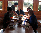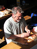 Several years back Seema (the fairy Godmother of this whole shebang), Meri, and JohnS came up with the idea for a gourment hut weekend during caretaker season. We'd have complete run of the kitchen for Seema's gastronmical machinations and lots of fun peakbagging. They held the first on at Galehead with only the three of them, but over the years it blossomed into a much bigger affair. This spring we had 28 people at Galehead Hut for a variety of hiking and eating goals.