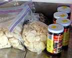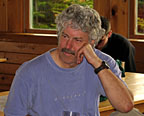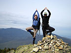 Back to the hut and an odd interlude of yoga and gymnastics on the lawn let to some steller photo ops. Then is was time to get ready for dinner. J&J, who had done the day's most obscure peak bagging of East and West Garfield, brought a variety of fun foods to play with. Crackers, cream cheese, parsley, goldfish, Old Bay seasoning, make for excellent artistic canvas, and our participants took full advantage. Bunchberry was generally considered to have won with her excellent representation of John. Seema had been working all afternoon in the kitchen with a team of sherpas preparing our fantabulous Thai dinner of Tom Yom soup, Drunken Noodles, and Pad Thai, which was consumed with great gusto. After a fine sunset, we finished dessert and started the many hiking related conversations that we are rampant in this group.