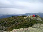 On the summit of South Twin we ran into Wendy and Jim. I lent Wendy my softshell jacket as they were going to North Twin and it was begining to rain. We didn't hang around too long and instead headed back to the hut. The trip down was slippery and slow, and the rain falling didn't help. MEB had considered heading to Guyot but the rain put an end to that. Instead she headed down to 13 Falls; those amazing Mean Girls. At the hut we started helping out with dinner prep for the nights Indian meal. Again, Seema pulled together a fantastic repast and we all ate and ate and ate, sharing our excess with the croo and other guests. The sunset wasn't as spectacular as the previous night and we hung around until after lights out since we were all going our separate ways the next day.