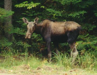 Moose are most active at dawn and dusk, but can be spotted throughout the day. There are several famous mud bogs along the Kanc, Rt 118 and Rt 16 near Errol that often have moose at dusk or dawn. They are not very afraid of humans, since they have no natural preditors in the region. Mothers are protective of their calves and will charge if they feel the calf is threatened.